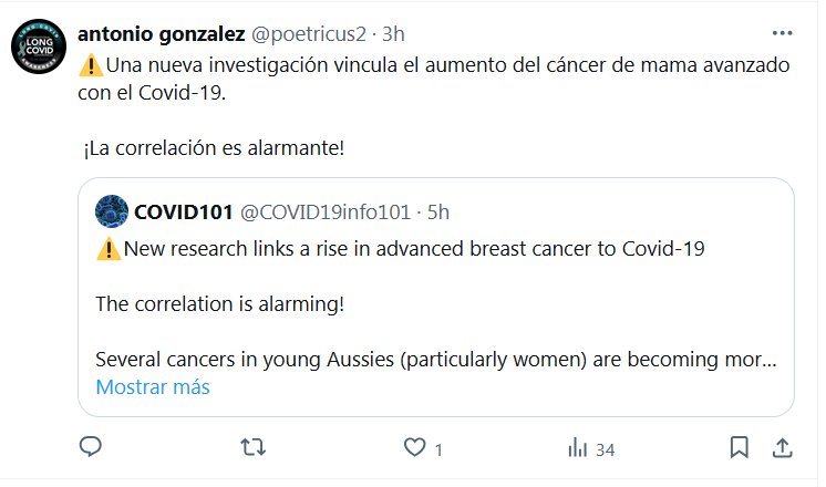 ⚠️Una nueva investigación vincula el aumento del cáncer de mama avanzado con el Covid-19. ¡La correlación es alarmante! Posted on octubre 24, 2024 por coronado https://x.com/COVID19info101/status/1849348232931135703 https://www.bodyandsoul.com.au/health/womens-health/breast-cancer-covid-rise/news-story/aabf8fb9e26098ac52f57f8b15e910b3