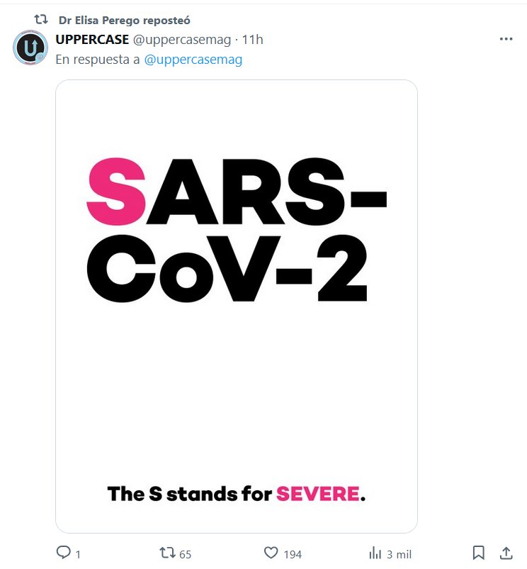 Dr Elisa Perego reposteó UPPERCASE @uppercasemag Sarscov2 : LA ESE MAYÚSCULA ES POR «SEVERA» Posted on octubre 24, 2024 por coronado