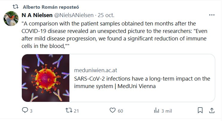 COVID≠GRIPE -> COVID≈SIDA (EN INGLÉS) «Una comparación con las muestras de pacientes obtenidas diez meses después de la enfermedad COVID-19 reveló una imagen inesperada para los investigadores: «Incluso después de una progresión leve de la enfermedad, encontramos una reducción significativa de las células inmunes en la sangre»»