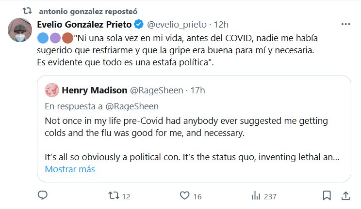 EUGENESIA NEONAZI 🔵🟣🟤»Ni una sola vez en mi vida, antes del COVID, nadie me había sugerido que resfriarme y que la gripe era buena para mí y necesaria. Es evidente que todo es una estafa política»