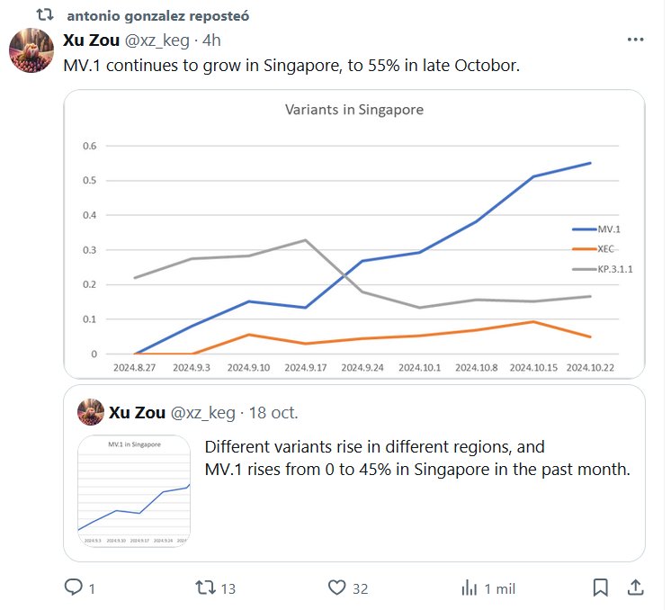 EN INGLÉS: VARIANTE DE CORONAVIRUS SARSCOV2 MV.1 continúa creciendo en Singapur, hasta alcanzar el 55% a finales de octubre Posted on octubre 30, 2024 por coronado