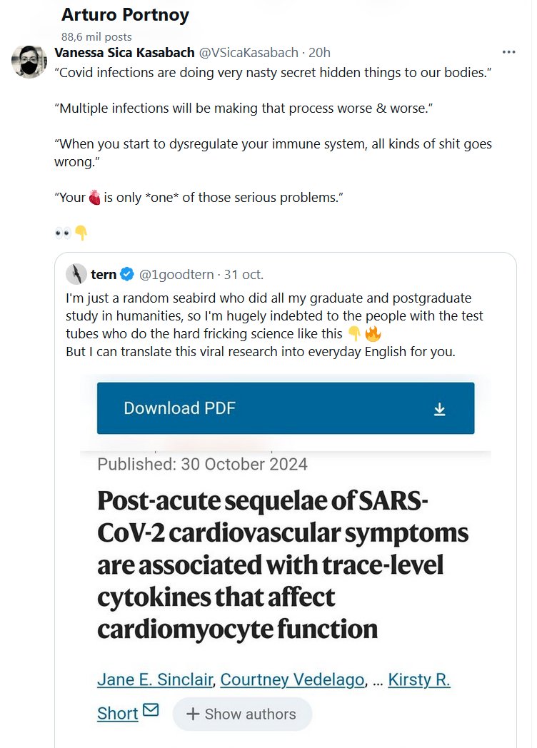 EN INGLÉS “Las infecciones por COVID-19 están provocando efectos muy desagradables y ocultos en nuestro cuerpo”. “Las infecciones múltiples empeorarán cada vez más ese proceso”. “Cuando empiezas a desregular tu sistema inmunológico, todo tipo de problemas empiezan a salir mal”. “Tu🫀[CORAZÓN] es solo *uno* de esos problemas graves”. 👀👇