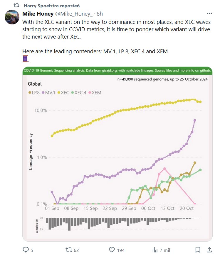 EN INGLÉS Ahora que la variante XEC va camino de dominar en la mayoría de los lugares y las oleadas de XEC comienzan a aparecer en las métricas de COVID, es hora de reflexionar sobre qué variante impulsará la siguiente oleada después de XEC. Estos son los principales contendientes: MV.1, LP.8, XEC.4 y XEM
