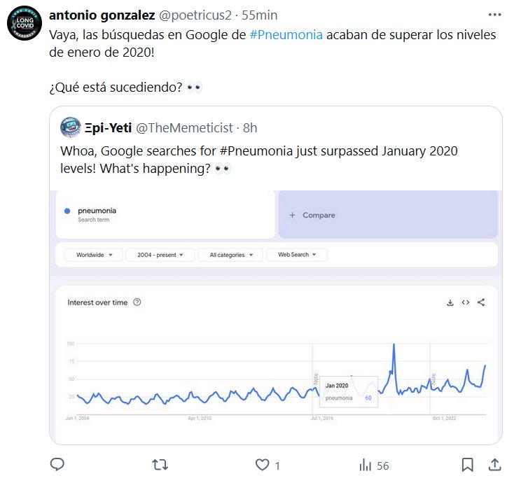 HACER COMO QUE NO PASA NADA NO ESTARÍA RESULTANDO Vaya, las búsquedas en Google de #Pneumonia acaban de superar los niveles de enero de 2020! ¿Qué está sucediendo? 👀