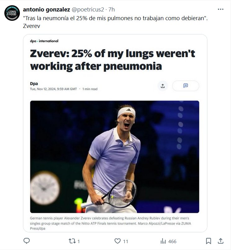 EXTRAÑAS ENFERMEDADES Y EXTRAÑA COINCIDENCIA DE AUMENTO DE NEUMONÍAS EN ERA COVID «Tras la neumonía el 25% de mis pulmones no trabajan como debieran». Zverev Posted on noviembre 13, 2024 por coronado