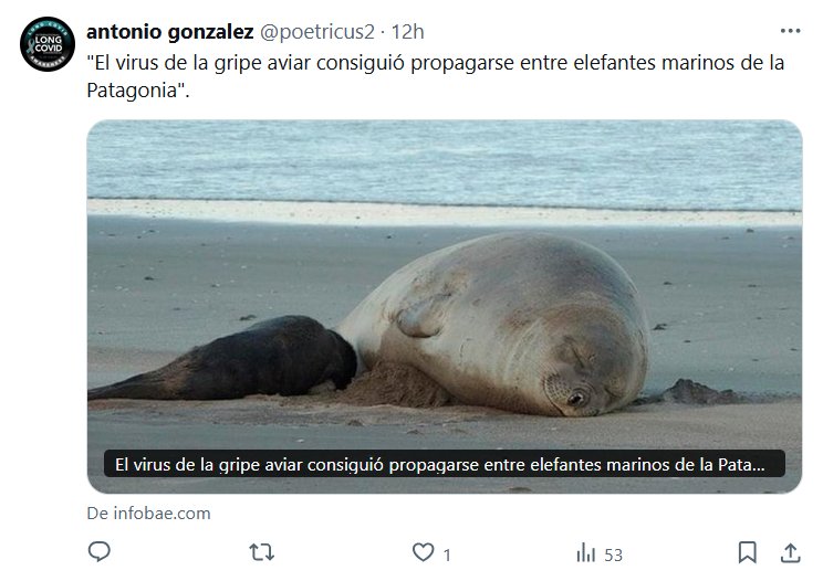 HASTA LA PANDEMIA QUE VIENE! PARAPANDEMIA-SS «El virus de la gripe aviar consiguió propagarse entre elefantes marinos de la Patagonia» Posted on noviembre 13, 2024 por coronado https://www.infobae.com/america/ciencia-america/2024/11/12/el-virus-de-la-gripe-aviar-consiguio-propagarse-entre-elefantes-marinos-de-la-patagonia/