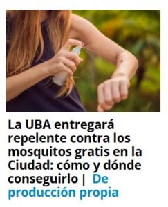 PARAPANDEMIA-SS La UBA entregará repelente contra los mosquitos gratis en la Ciudad: cómo y dónde conseguirlo De producción propia Posted on noviembre 13, 2024 por coronado https://www.pagina12.com.ar/782325-la-uba-entregara-repelente-contra-los-mosquitos-gratis-en-la