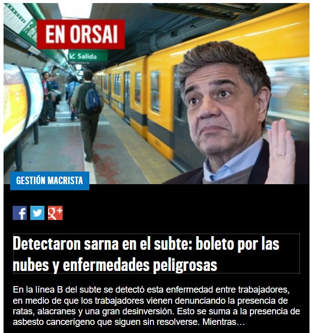PESTE CACOCRACIA DISFRAZADA DE MERITOCRACIA Gestión macrista Detectaron sarna en el subte: boleto por las nubes y enfermedades peligrosas En la línea B del subte se detectó esta enfermedad entre trabajadores, en medio de que los trabajadores vienen denunciando la presencia de ratas, alacranes y una gran desinversión. Esto se suma a la presencia de asbesto cancerígeno que siguen sin resolverse