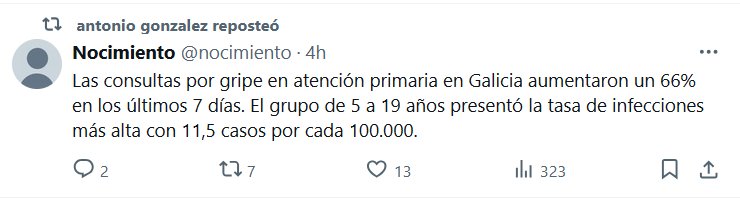 NODIGAMOSCOVID HACE ESTRAGOS Las consultas por gripe en atención primaria en Galicia aumentaron un 66% en los últimos 7 días. El grupo de 5 a 19 años presentó la tasa de infecciones más alta con 11,5 casos por cada 100.000