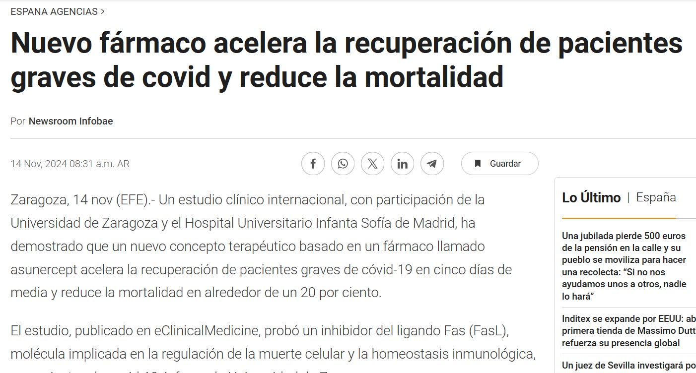 Nuevo fármaco acelera la recuperación de pacientes graves de covid y reduce la mortalidad Posted on noviembre 14, 2024 por coronado https://www.infobae.com/espana/agencias/2024/11/14/nuevo-farmaco-acelera-la-recuperacion-de-pacientes-graves-de-covid-y-reduce-la-mortalidad/
