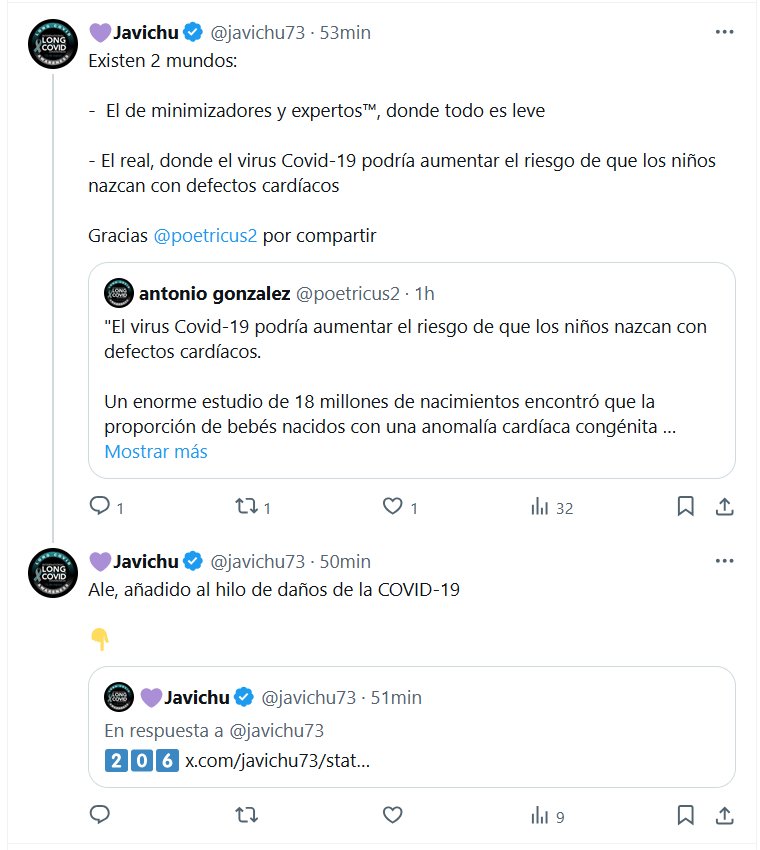 💜Javichu @javichu73 · 53min Existen 2 mundos: – El de minimizadores y expertos™, donde todo es leve – El real, donde el virus Covid-19 podría aumentar el riesgo de que los niños nazcan con defectos cardíacos Gracias @poetricus2 por compartir