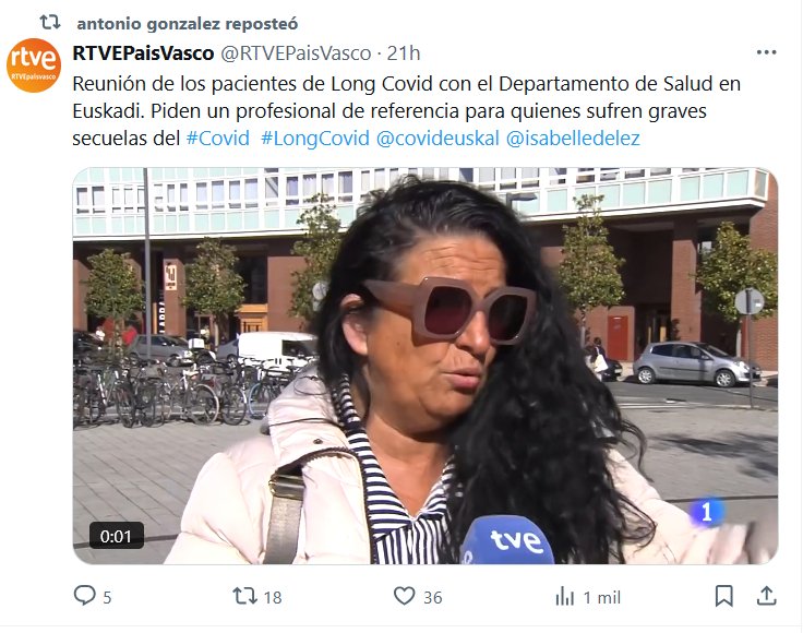 RTVEPaisVasco @RTVEPaisVasco · 21h Reunión de los pacientes de Long Covid con el Departamento de Salud en Euskadi. Piden un profesional de referencia para quienes sufren graves secuelas del #Covid #LongCovid @covideuskal @isabelledelez