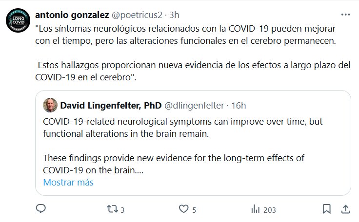 «Los síntomas neurológicos relacionados con la COVID-19 pueden mejorar con el tiempo, pero las alteraciones funcionales en el cerebro permanecen. Estos hallazgos proporcionan nueva evidencia de los efectos a largo plazo del COVID-19 en el cerebro»