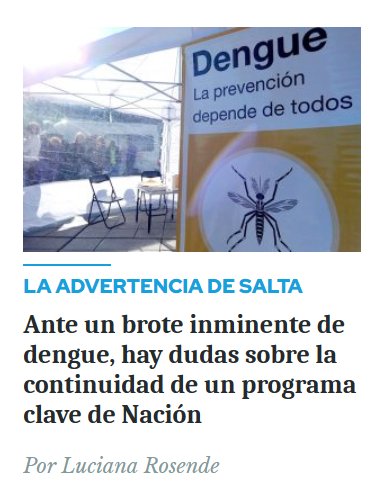 PARAPANDEMIA-SS LA ADVERTENCIA DE SALTA Ante un brote inminente de dengue, hay dudas sobre la continuidad de un programa clave de Nación Posted on noviembre 16, 2024 por coronado https://www.tiempoar.com.ar/informacion-general/brote-dengue-programa-nacion/