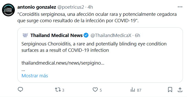 NUNCA FUE LEVE, ES POTENCIALMENTE MORTAL «Coroiditis serpiginosa, una afección ocular rara y potencialmente cegadora que surge como resultado de la infección por COVID-19» Posted on noviembre 17, 2024 por coronado https://x.com/ThailandMedicaX/status/1858071136015437909