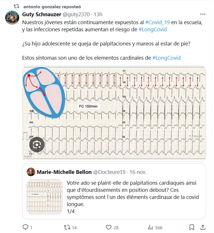 GENOCIDIO EN CURSO Nuestros jóvenes están continuamente expuestos al #Covid_19 en la escuela, y las infecciones repetidas aumentan el riesgo de #LongCovid ¿Su hijo adolescente se queja de palpitaciones y mareos al estar de pie? Estos síntomas son uno de los elementos cardinales de #LongCovid