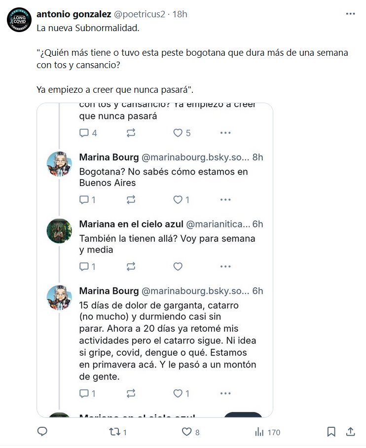 ESCUCHO VOCES La nueva Subnormalidad. «¿Quién más tiene o tuvo esta peste bogotana que dura más de una semana con tos y cansancio? Ya empiezo a creer que nunca pasará» «BOGOTANA? NO SABES COMO ESTAMOS EN BUENOS AIRES»
