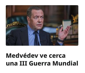 PESTE FINAL Medvédev ve cerca una III Guerra Mundial: «Quizás Biden decidió irse a lo lindo de la vida, llevándose consigo a gran parte de la humanidad» Posted on noviembre 19, 2024 por coronado https://actualidad.rt.com/actualidad/530846-medvedev-guerra-mundial-biden-misiles