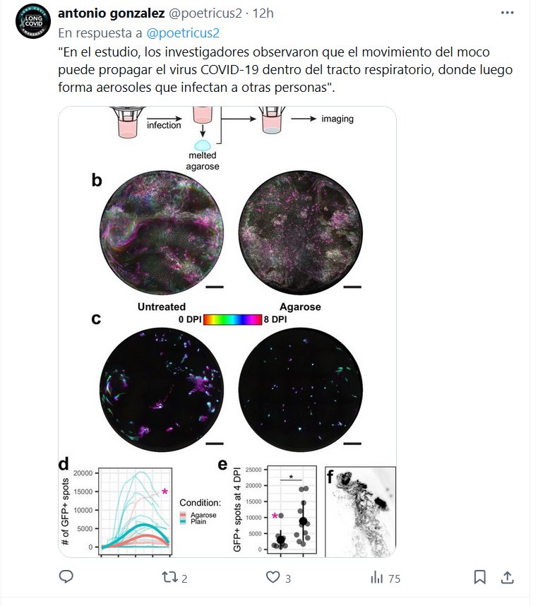 «En el estudio, los investigadores observaron que el movimiento del moco puede propagar el virus COVID-19 dentro del tracto respiratorio, donde luego forma aerosoles que infectan a otras personas».