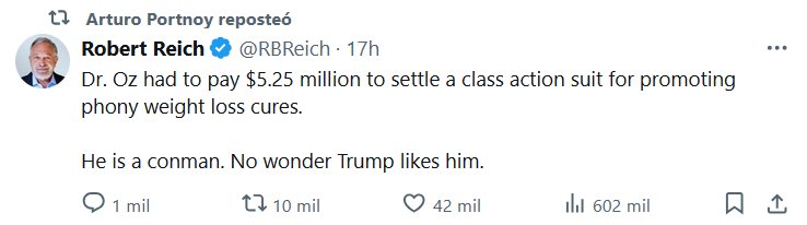 EL SISTEMA DE SALUD DE EE.UU. (EN INGLÉS) El Dr. Oz tuvo que pagar 5,25 millones de dólares para resolver una demanda colectiva por promover curas falsas para bajar de peso. Es un estafador. No es de extrañar que a Trump le guste