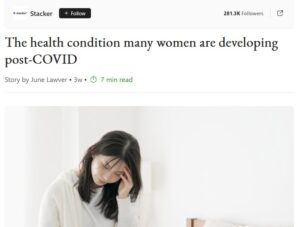EN INGLÉS La condición de salud que muchas mujeres están desarrollando después del COVID Si eres nuevo en el mundo del síndrome de taquicardia postural ortostática, ya sea por sus nuevas conexiones con el COVID-19 prolongado o por su reciente impulso en las redes sociales, probablemente te hayas topado con la larga lista de síntomas