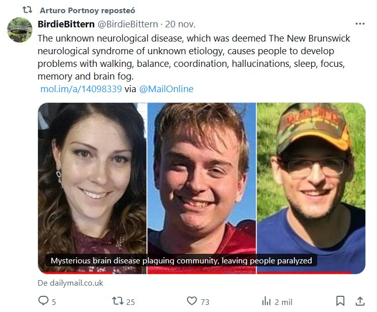 NODIGAMOSCOVID Y POSTCOVID HACEN ESTRAGOS El síndrome neurológico de etiología desconocida de New Brunswick hace que las personas desarrollen problemas de marcha, equilibrio, coordinación, alucinaciones, sueño, concentración, memoria y niebla cerebral.