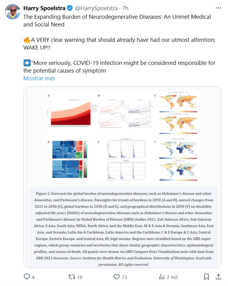 EN INGLÉS Harry Spoelstra @HarrySpoelstra La creciente carga de enfermedades neurodegenerativas: una necesidad médica y social insatisfecha 🔥Una advertencia MUY clara que ya debería haber recibido toda nuestra atención: ¡DESPIERTA! ➡️»Más grave aún, la infección por COVID-19 podría considerarse responsable de las posibles causas de los síntomas»
