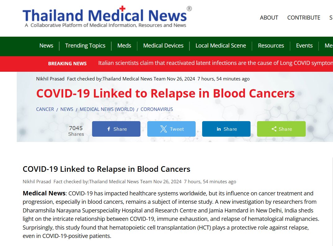 Covid NO AYUDA con el cáncer! (EN INGLÉS) COVID-19 relacionado con la recaída en los cánceres de sangre Posted on noviembre 26, 2024 por coronado https://www.thailandmedical.news/news/covid-19-linked-to-relapse-in-blood-cancers