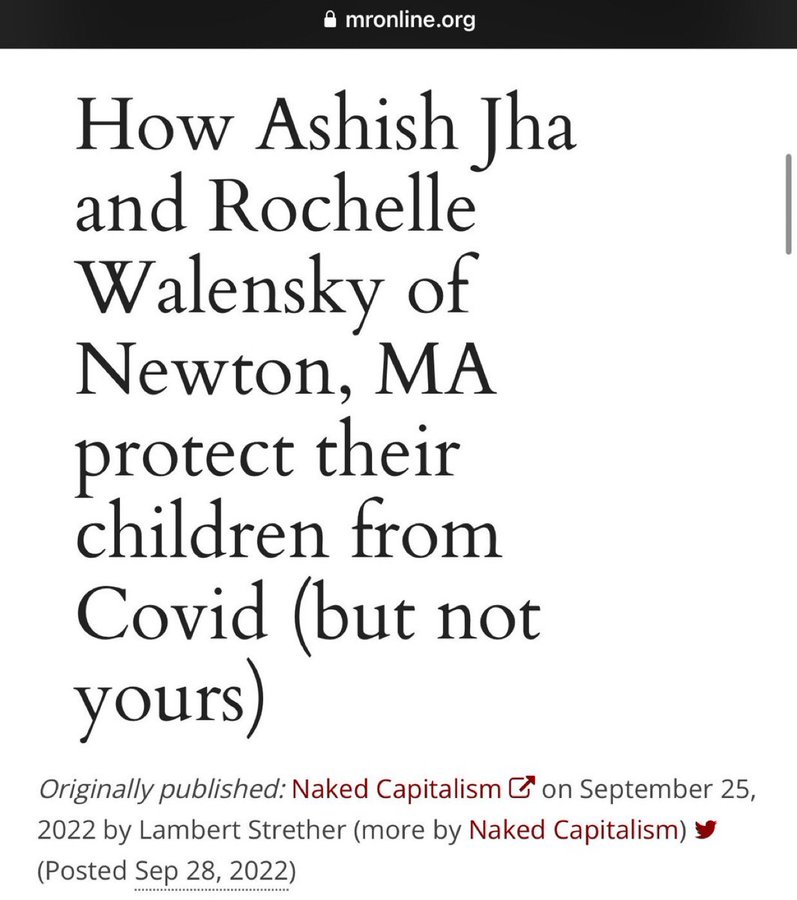 EN INGLÉS: «CÓMO ASHISH JHA AND ROCHELLE WALENSKY DE NEWTON, MA [Massachusetts] PROTEJEN SUS HIJOS DE COVID (PERO NO LOS DE USTEDES)» Posted on noviembre 26, 2024 por coronado