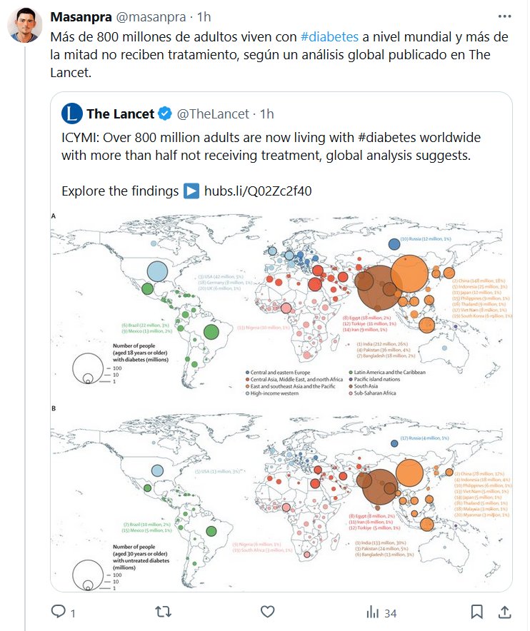 PESTE HEREN CIA CAPITALISTA CONSUMISTA Más de 800 millones de adultos viven con #diabetes a nivel mundial y más de la mitad no reciben tratamiento, según un análisis global publicado en The Lancet