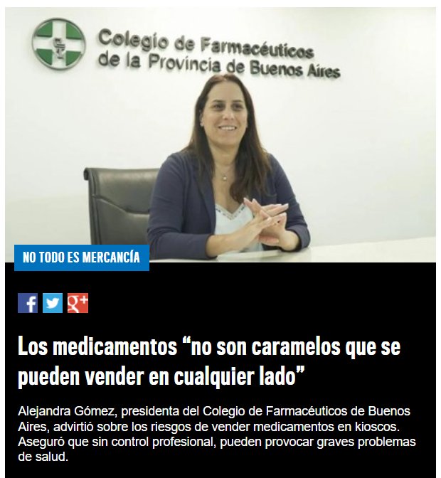 SALUD VS CAPITALISMO Los medicamentos “no son caramelos que se pueden vender en cualquier lado” Alejandra Gómez, presidenta del Colegio de Farmacéuticos de Buenos Aires, advirtió sobre los riesgos de vender medicamentos en kioscos