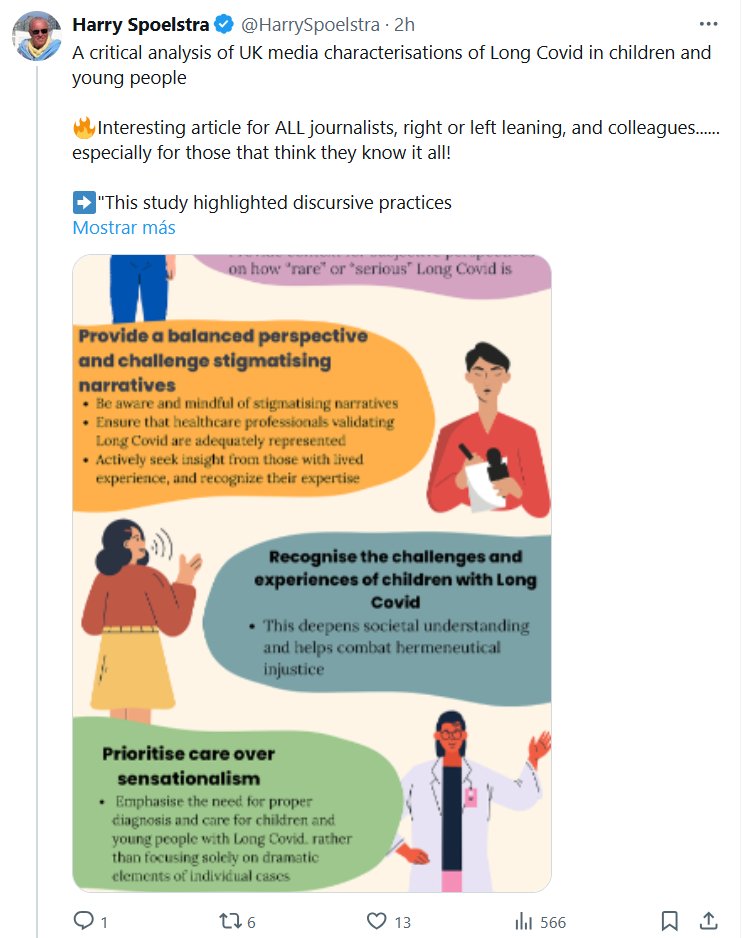 EN INGLÉS Harry Spoelstra @HarrySpoelstra Un análisis crítico de las caracterizaciones que los medios británicos hacen del Covid prolongado en niños y jóvenes 🔥Artículo interesante para TODOS los periodistas, de derechas o de izquierdas, y colegas… ¡especialmente para aquellos que creen que lo saben todo!