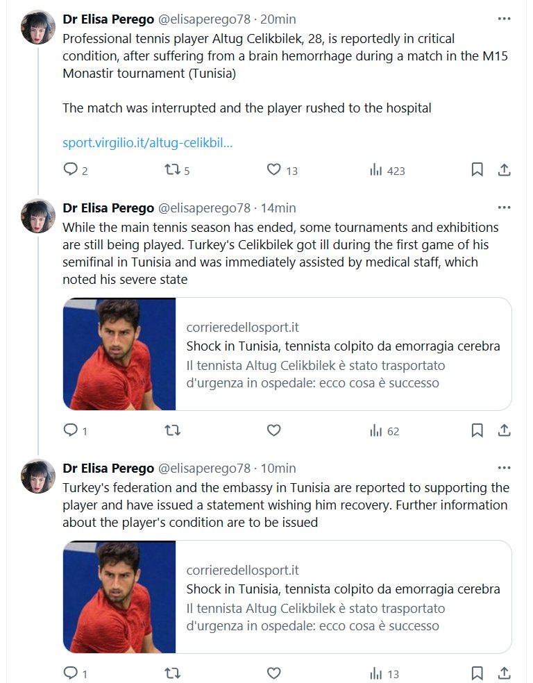 EXTRAÑAS ENFERMEDADES EN LA ERA COVID (EN INGLÉS) Dra. Elisa Perego @elisaperego78 El tenista profesional Altug Celikbilek, de 28 años, se encuentra en estado crítico tras sufrir una hemorragia cerebral durante un partido del torneo M15 de Monastir (Túnez) El partido fue interrumpido y el jugador fue trasladado de urgencia al hospital
