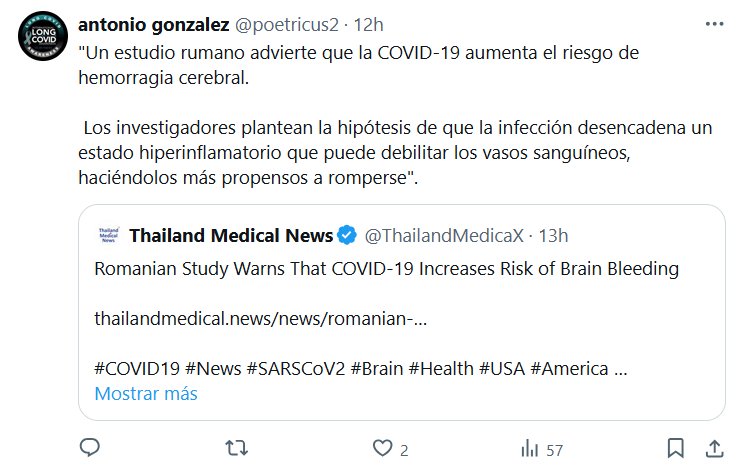 «Un estudio rumano advierte que la COVID-19 aumenta el riesgo de hemorragia cerebral. Los investigadores plantean la hipótesis de que la infección desencadena un estado hiperinflamatorio que puede debilitar los vasos sanguíneos, haciéndolos más propensos a romperse».