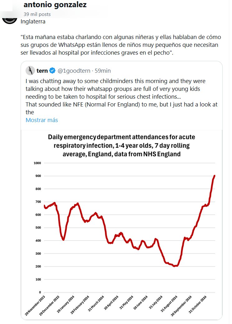 NODIGAMOSCOVID HACE ESTRAGOS Inglaterra «Esta mañana estaba charlando con algunas niñeras y ellas hablaban de cómo sus grupos de WhatsApp están llenos de niños muy pequeños que necesitan ser llevados al hospital por infecciones graves en el pecho»