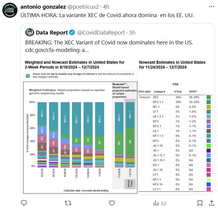 ÚLTIMA HORA: La variante XEC de Covid ahora domina en los EE. UU. Posted on diciembre 6, 2024 por coronado