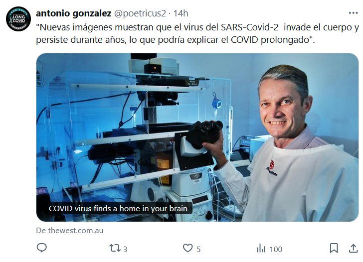 «Nuevas imágenes muestran que el virus del SARS-Covid-2 invade el cuerpo y persiste durante años, lo que podría explicar el COVID prolongado» Posted on diciembre 8, 2024 por coronado https://thewest.com.au/business/health/new-imaging-shows-virus-invading-the-body-and-lingering-for-years-potentially-explaining-long-covid-c-16997984?utm_campaign=share-icons&utm_source=twitter&utm_medium=social&tid=1733610379566