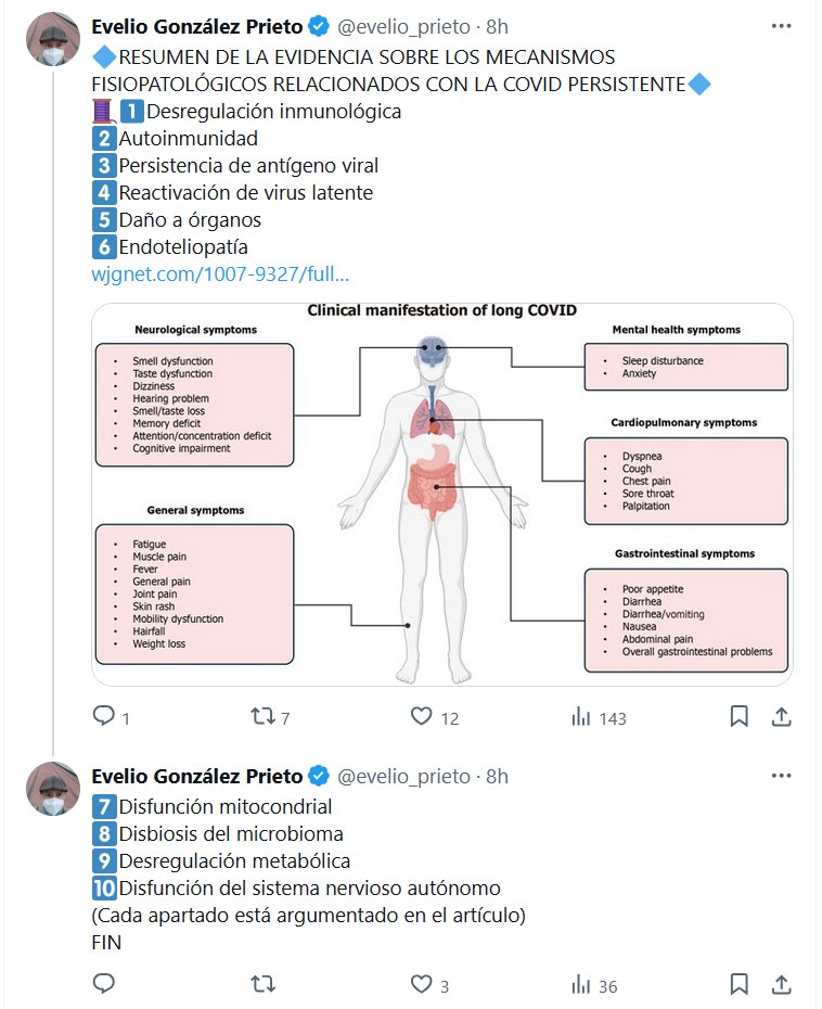 🔷RESUMEN DE LA EVIDENCIA SOBRE LOS MECANISMOS FISIOPATOLÓGICOS RELACIONADOS CON LA COVID PERSISTENTE🔷 🧵1⃣Desregulación inmunológica 2⃣Autoinmunidad 3⃣Persistencia de antígeno viral 4⃣Reactivación de virus latente 5⃣Daño a órganos 6⃣Endoteliopatía
