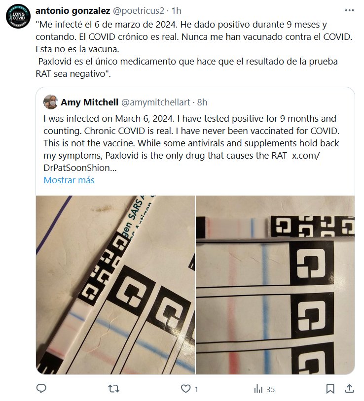 TESTIMONIOS DEL INFIERNO COVID SIN VACUNA «Me infecté el 6 de marzo de 2024. He dado positivo durante 9 meses y contando. El COVID crónico es real. Nunca me han vacunado contra el COVID. Esta no es la vacuna. Paxlovid es el único medicamento que hace que el resultado de la prueba RAT sea negativo»