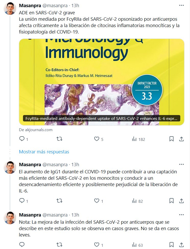 ADE en SARS-CoV-2 grave La unión mediada por FcγRIIa del SARS-CoV-2 opsonizado por anticuerpos afecta críticamente a la liberación de citocinas inflamatorias monocíticas y la fisiopatología del COVID-19