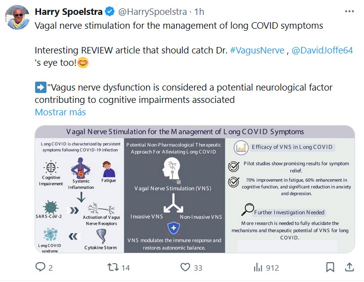 EN INGLÉS Harry Spoelstra @HarrySpoelstra Estimulación del nervio vago para el tratamiento de los síntomas de COVID prolongado ¡Un artículo de REVISIÓN interesante que también debería llamar la atención del Dr. #VagusNerve @DavidJoffe64!😊