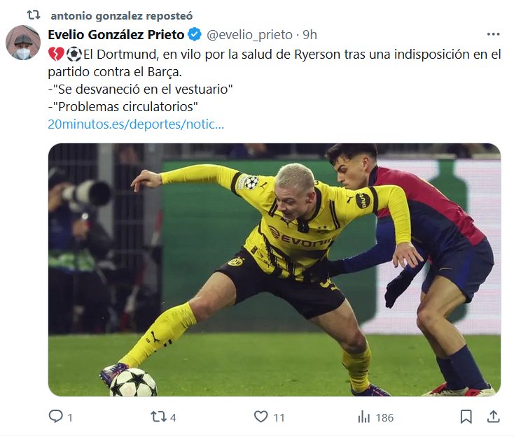 POSTCOVID HACE ESTRAGOS 💔⚽️El Dortmund, en vilo por la salud de Ryerson tras una indisposición en el partido contra el Barça. -«Se desvaneció en el vestuario» -«Problemas circulatorios» Posted on diciembre 17, 2024 por coronado