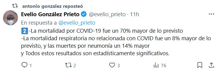 DATOS 2⃣-La mortalidad por COVID-19 fue un 70% mayor de lo previsto -La mortalidad respiratoria no relacionada con COVID fue un 8% mayor de lo previsto, y las muertes por neumonía un 14% mayor y Todos estos resultados son estadísticamente significativos.