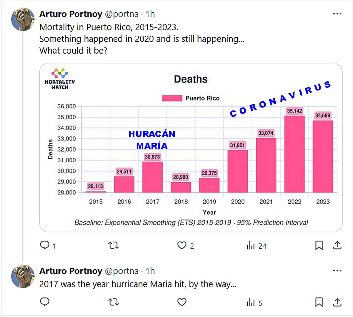 NODIGAMOSCOVID SIGUE MATANDO (EN INGLÉS) Arturo Portnoy @portna Mortalidad en Puerto Rico, 2015-2023. Algo pasó en el 2020 y sigue pasando… ¿Qué podrá ser? Posted on diciembre 18, 2024 por coronado