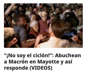 MÁS PLAGAS BÍBLICAS: HURACANES EN EE.UU., LA DANA EN ESPAÑA Y CICLÓN EN FRANCIA «¡No soy el ciclón!»: Abuchean a Macrón en Mayotte durante su visita al archipiélago de Mayotte, devastado tras el paso del ciclón Chido, la tormenta más fuerte en la zona desde hace 90 años