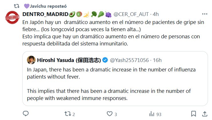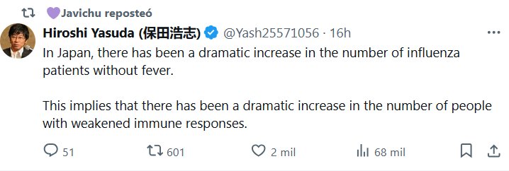 Y CUANDO DECIMOS GRIPE DECIMOS COVID? EN INGLÉS Hiroshi Yasuda (保田浩志) @Yash25571056 En Japón, ha habido un aumento drástico en el número de pacientes con gripe sin fiebre. Esto implica que ha habido un aumento drástico en el número de personas con respuestas inmunitarias debilitadas