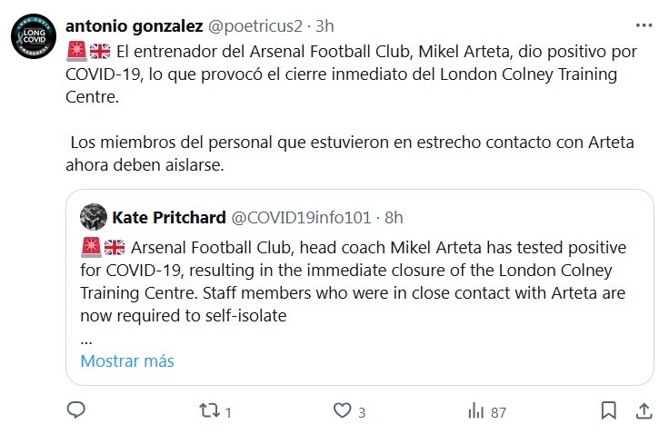 «YA NO HAY COVID», SALVO EN TODOS LADOS! antonio gonzalez @poetricus2 · 3h 🚨🇬🇧 El entrenador del Arsenal Football Club, Mikel Arteta, dio positivo por COVID-19, lo que provocó el cierre inmediato del London Colney Training Centre. Los miembros del personal que estuvieron en estrecho contacto con Arteta ahora deben aislarse