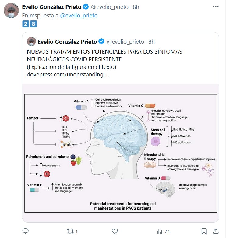 DR. Evelio González Prieto @evelio_prieto · NUEVOS TRATAMIENTOS POTENCIALES PARA LOS SÍNTOMAS NEUROLÓGICOS COVID PERSISTENTE Posted on diciembre 27, 2024 por coronado https://www.dovepress.com/understanding-post-covid-19-mechanisms-neurological-complications-curr-peer-reviewed-fulltext-article-IJGM
