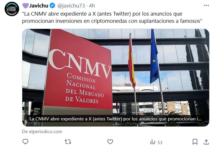 PESTE LADRON DEL MUNDO Y SU ESTAFA MUNDIAL TRAMPMASK «La CNMV abre expediente a X (antes Twitter) por los anuncios que promocionan inversiones en criptomonedas con suplantaciones a famosos» Posted on diciembre 27, 2024 por coronado