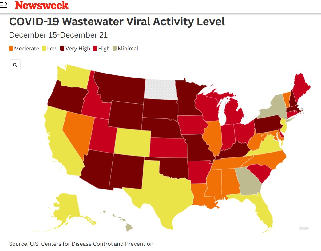 AUNQUE TA NO SEA NOTICIA (EN INGLÉS) Actualización de COVID: el mapa de los CDC revela estados con una actividad viral ‘alta’ en aguas residuales Posted on diciembre 28, 2024 por coronado https://www.newsweek.com/covid-map-wastewater-viral-levels-map-cdc-2006827